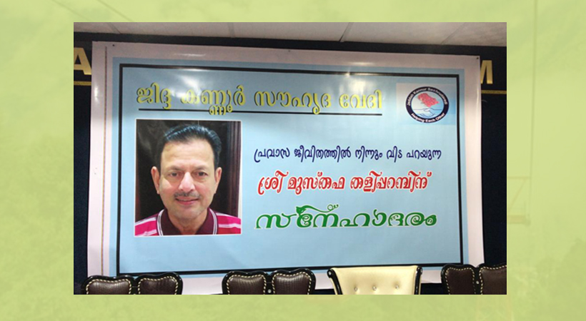 സൗഹൃദവേദി നല്കിയ യാത്രയപ്പിനു മുസ്തഫ തളിപ്പറബ് നന്ദി അറിയിച്ച് സംസാരിച്ചു. സൗഹൃദ വേദി കലാകാരന്മാര് ഒരുക്കിയ സംഗീതനിശയും അരങ്ങേറി.