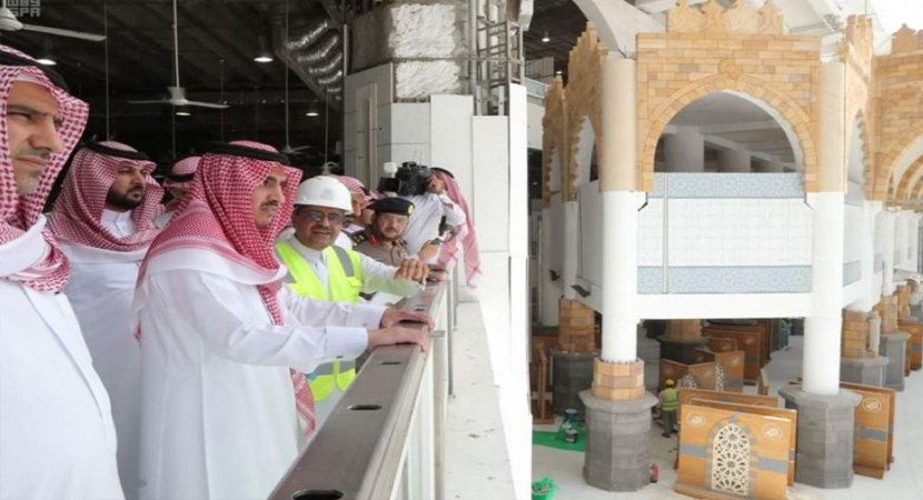 ഉദേൃാഗസ്ഥരോടൊപ്പം ഹറമിലെത്തിയ ഡെപൃുട്ടി ഗവര്ണ്ണര് ഹറം പള്ളിയുടെ വടക്കുഭാഗത്തുള്ള മുറ്റം, ജര്വ്വല് ടണല്, കിംഗ് അബ്ദുല് അസീസ് ഗെയ്റ്റില് നടന്നുകൊണ്ടിരിക്കുന്ന അവസാന മിനുക്കുപണികള് തുടങ്ങി വിശുദ്ധ ഹറാമിന്റെയും അബുബന്ധ സൗകരൃങ്ങളുടെയും നിര്മ്മാണ പ്രവര്ത്തനങ്ങളുടെ പുരോഗതി നേരില് കണ്ട് മനസ്സിലാക്കി.