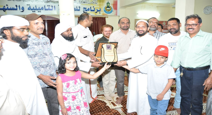 പന്തളം ഷാജി ചടങ്ങില് അധൃക്ഷത വഹിച്ചു. മലയാളി കൂട്ടായ്മയുടെ ഉപഹാരം സമീര് മൗലവി ആലപ്പുഴ മന്നാനിക്ക് സമ്മാനിച്ചു. ഡോ. മുഹമ്മദ് ഷാഫിക്ക് മൊയ്തു മന്നാനി ഉപഹാരം നല്കി. വിവിധ സംഘടനകളെ പ്രതിനിധികരിച്ച് ഇക്ബാല് പുലാമന്തോള്(നവോദയ), ഇസ്ഹാഖ് (തനിമ), ഷാഫിഖാന്(ബ്രദേഴ്സ്), ഷംസു ഉമ്മര്(സ്മാഷേസ്) എന്നിവര് ഉപാഹരങ്ങള് നല്കി.