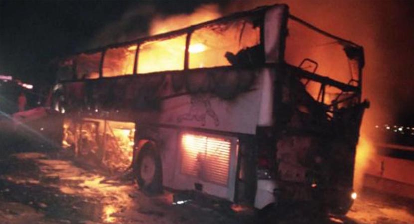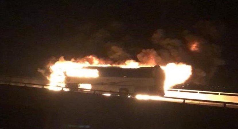 നാലു ദിവസം നീണ്ടുനില്ക്കുന്ന മദീന, മക്ക സന്ദര്ശനത്തിനായിരുന്നു ബസ് പുറപ്പെട്ടത്. മണ്ണുമാന്തി വാഹനവുമായി കൂട്ടിയിടിച്ചാണ് അപകടമുണ്ടായതെന്ന് സിറ്റി പോലിസ് അറിയിച്ചു. കൂട്ടിയിടിച്ച ബസ് കത്തിയമരുകയായിരുന്നു. പരിക്കേറ്റവരെ റെഡ് ക്രസന്റും മറ്റു സുരക്ഷാവിഭാഗങ്ങളും ചേര്ന്ന് ഹംനയിലെ ആശുപത്രിയില് പ്രവേശിപ്പിച്ചു.