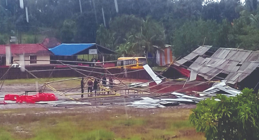 കൊളത്തൂര് ഗവ. ഹൈസ്കൂളില് നടക്കുന്നകലോത്സവത്തിന്റെ വേദി എ യും പന്തലുമാണ് കാറ്റിലും മഴയിലും തകര്നന്നത്. പരിപാടിയുടെ ഒരു ഒഫീഷ്യലിന് പരിക്ക് പറ്റിയതായും റിപ്പോര്ട്ടുകളുണ്ട്. പന്തല് വീഴുന്നതിന് തൊട്ടുമുമ്പ് വേദിയില് ഉണ്ടായിരുന്ന എല്ലാവരും ഓടി രക്ഷപ്പെട്ടതിനാലാണ് വന് ദുരന്തം ഒഴിവായത്.