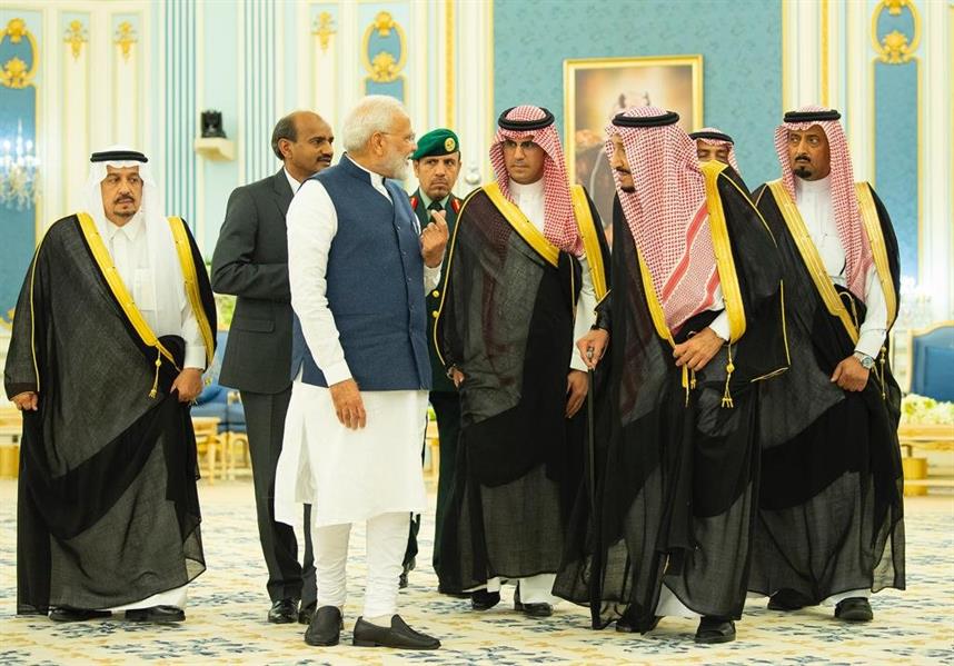 പ്രധാനമന്ത്രിക്കു പുറമെ കൂടെയുള്ള ഇന്ത്യന് സംഘത്തിനെയും തിരുഗേഹങ്ങളുടെ സേവകന് സല്മാന് രാജാവ് കൈകൊടുത്തു സ്വീകരിച്ചു.