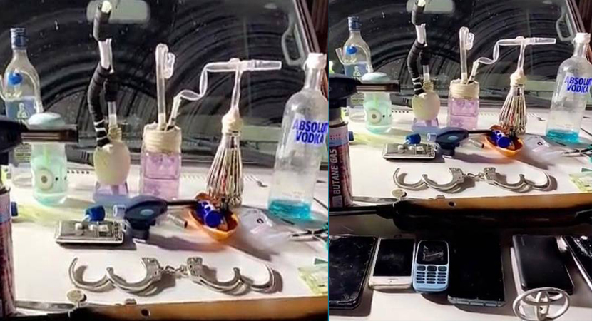 പ്രതിയുടെ കേന്ദ്രത്തില് നിന്നും മയക്കുമരുന്ന് ഉപയോഗിക്കുന്നതിനാവശ്യമായ ഉപകരണങ്ങള്, മദ്യക്കുപ്പികള്, നിരോധിത മയക്കുമരുന്നുകള്, കൂടാതെ വേട്ടക്ക് ഉപയോഗിക്കുന്ന തോക്ക്, പെണ്കുട്ടിയെ ബന്ധിച്ച ഇരുമ്പ് ക്ലിപ്പുകള് എന്നിവയും പോലീസ് കണ്ടെടുത്തു.