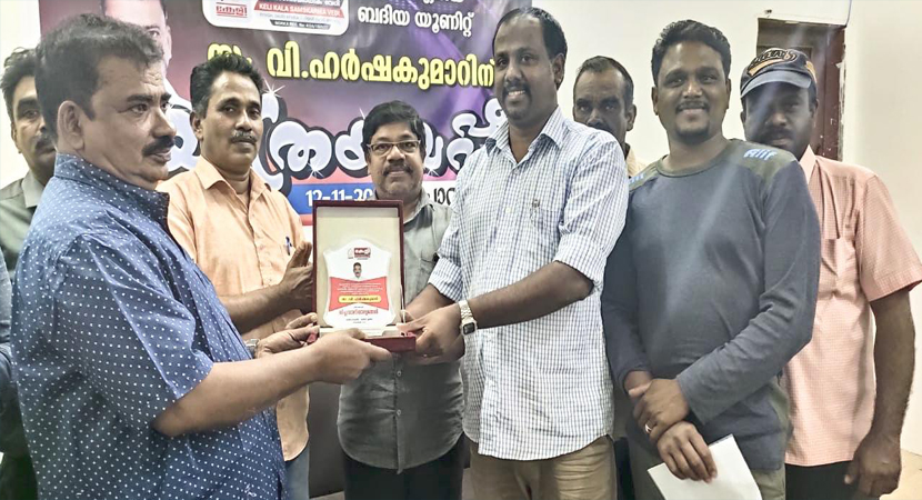 ഫോട്ടോ: യൂണിറ്റിന്റെ ഉപഹാരം വി ഹര്ഷകുമാറിന് യൂനിറ്റ് അംഗങ്ങള് കൈമാറുന്നു.