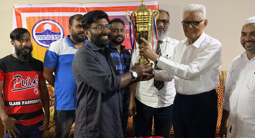 കേരംസ് ടൂര്ണ്ണമെന്റില് വിജയിച്ച ശിഹാബുദ്ദീന് കോഴിക്കോടിന് ടി കെ ഹംസ സമ്മാനം കൈമാറുന്നു.