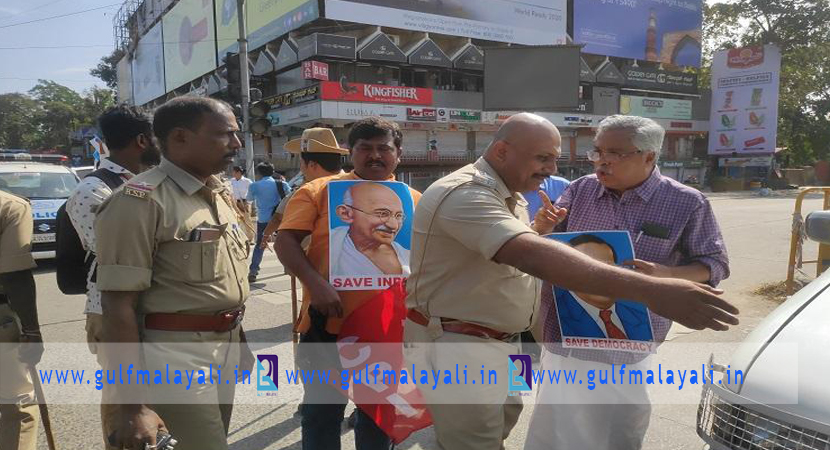 മഹാത്മാഗാന്ധിയുടേയും അംബേദ്കറുടേയും ചിത്രങ്ങളുമായി നഗരത്തിലെത്തിയ ഇവരെ പൊലീസ് കസ്റ്റഡിയിലെടുത്ത് സ്റ്റേഷനിലെത്തിക്കുകയായിരുന്നു.