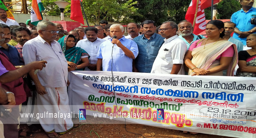 കണ്ണൂർ: കേരള ലോട്ടറിക്ക് ജി.എസ്.ടി 28% ആക്കിയ നടപടി പിൻവലിക്കുക എന്നാവശ്യപ്പെട്ട് ഭാഗ്യക്കുറി സംരക്ഷണ സമിതിയുടെ ആഭിമുഖ്യത്തിൽ ഹെഡ്പോസ്റ്റോഫീസ് മാർച്ചും ധർണ്ണയും സംഘടിപ്പിച്ചു.
