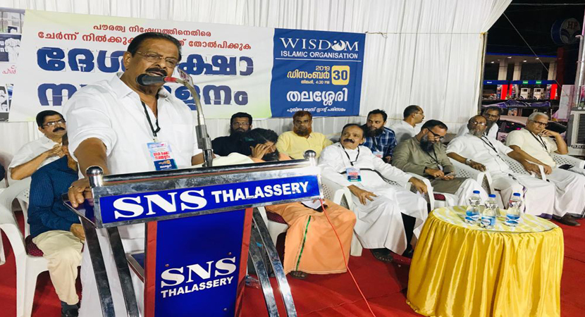 തലശ്ശേരി: ഒരു പ്രത്യേക മത വിഭാഗത്തെ വേർതിരിക്കുന്ന പൗരത്വ ഭേദഗതി നിയമം അംഗീകരിക്കാനാവില്ലെന്നു കെ. സുധാകരന് എം. പി പറഞ്ഞു. ‘പൗരത്വ നിഷേധത്തിനെതിരെ ചേർന്നു നിൽക്കുക; ചെറുത്ത് തോൽപ്പിക്കുക’ എന്ന മുദ്രാവാക്യമുയർത്തി വിസ്ഡം ഇസ്ലാമിക് ഓർഗ്ഗനൈസേഷൻ തലശ്ശേരി പുതിയ ബസ്റ്റാന്റിൽ സംഘടിപ്പിച്ച ദേശരക്ഷ സമ്മേളനം ഉദ്ഘാടനം ചെയ്തു സംസാരിക്കുകയായിരുന്നു കെ. സുധാകരന് എം. പി. വിവിധ മതങ്ങളെയും ആചാരങ്ങളെയും ഉൾക്കൊള്ളാൻ കഴിയുന്ന മഹത്തായ ഭരണ ഘടനയുള്ള രാജ്യമാണ് ഇന്ത്യ. രാജ്യത്തുടനീളം തടങ്കൽപാളയങ്ങൾ നിർമ്മിച്ചുവരികയാണ് കേന്ദ്രസർക്കാർ. ഇത് എന്തിനുവേണ്ടിയാണെന്ന് മോഡി വ്യക്തമാക്കണമെന്നും സുധാകരന് ആവശ്യപ്പെട്ടു.