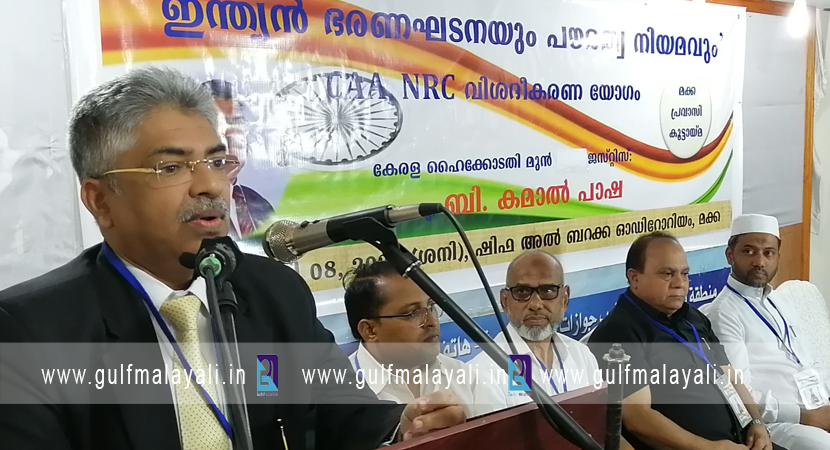പൗരത്വ നിയമ ഭേദഗതിയുമായി ബന്ധപ്പെട്ട സദസ്സ്യരുടെ സംശയങ്ങള്ക്ക് ബി. കെമാല് പാഷ മറുപടി നല്കി. മക്കയിലെ വിവിധ രാഷ്ട്രീയ, മത, സാംസ്കാരിക, സന്നദ്ധ സംഘടനകളുടെ സാന്നിധ്യത്തില് ബി. കെമാല് പാഷക്ക് മൊമെന്േറാ നല്കി ആദരിച്ചു.