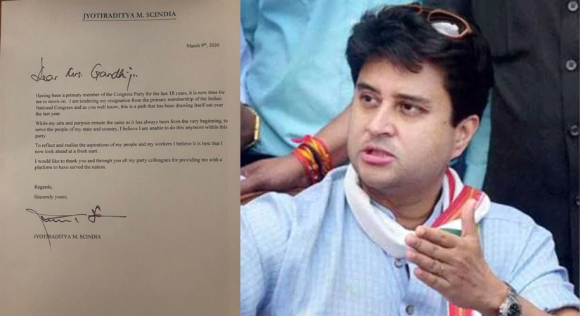 സോണിയ ഗാന്ധിക്ക് രാജി കത്ത് നല്കിയതിന് ശേഷം ജ്യോതിരാദിത്യ സിന്ത്യയെ കോണ്ഗ്രസ് പുറത്താക്കി