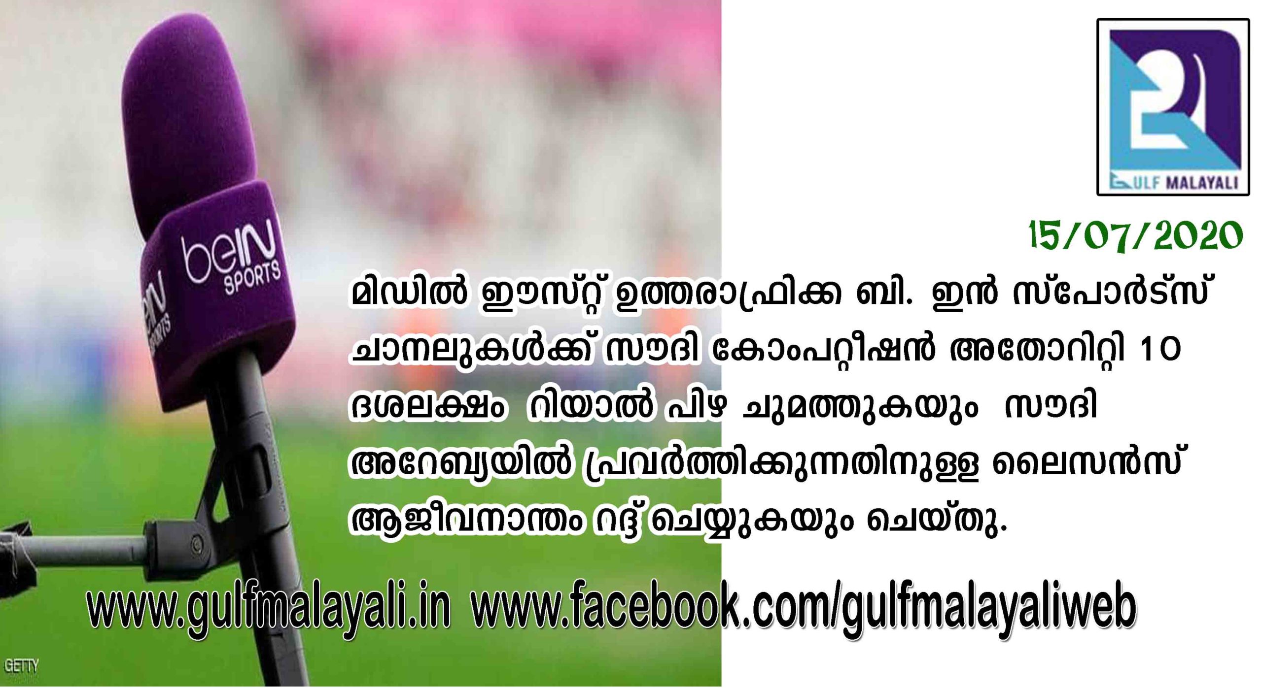 റിയാദ്: മിഡില് ഈസ്റ്റ് ഉത്തരാഫ്രിക്ക “ബി. ഇന് സ്പോര്ട്സ്” ചാനലുകള്ക്ക് സൗദി കോംപറ്റീഷന് അതോറിറ്റി 10 ദശലക്ഷം (ഒരു കോടി) റിയാല് പിഴ ചുമത്തുകയും സൗദി അറേബ്യയില് പ്രവര്ത്തിക്കുന്നതിനുള്ള ലൈസന്സ് ആജീവനാന്തം റദ്ദ് ചെയ്യുകയും ചെയ്തു.