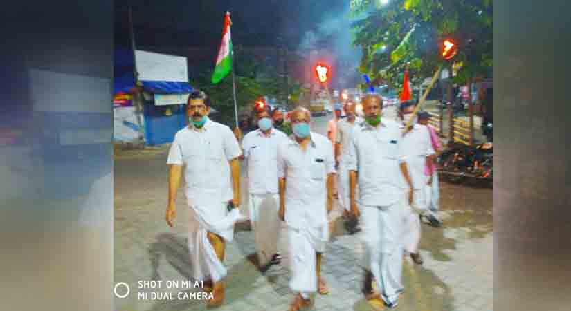 മുഖ്യമന്ത്രിയുടെ രാജി ആവശ്യപ്പെട്ട് കോൺഗ്രസ് പ്രവർത്തകർ പന്തം കൊളുത്തി പ്രകടനം നടത്തി