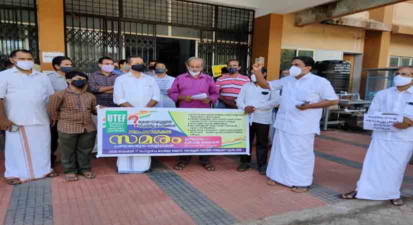 തലശ്ശേരി: ഇടതു സര്ക്കാര് തകര്ത്തെറിഞ്ഞ സിവില് സര്വ്വീസിന്റെ ആത്മാഭിമാനം വീണ്ടെടുക്കുക എന്ന മുദ്രാവാക്യമുയര്ത്തി യുനൈറ്റഡ് ടീച്ചേര്സ് ആന്റ് എംപ്ളോയീസ് ഫെഡറേഷന് (യു.ടി.ഇ.എഫ്) തലശ്ശേരി താലൂക്ക് കമ്മിറ്റിയുടെ നേതൃത്വത്തില് താലൂക്ക് ഓഫീസിനു മുന്നില് നിലപാട് അറിയിക്കല് സമരം നടത്തി.