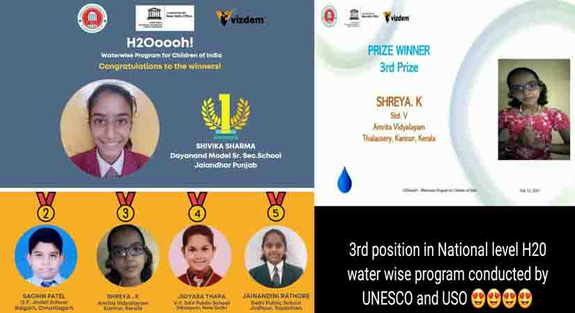 കുട്ടികൾ സമർപ്പിച്ച 80 സ്റ്റോറി ബോർഡിൽ നിന്നും മികച്ച 5 വിദ്യാർത്ഥികളിൽ ഉൾപ്പെട്ട തലശ്ശേരി അമൃത വിദ്യാലയത്തിലെ അഞ്ചാം ക്ലാസ് വിദ്യാർത്ഥിനിയായ ശ്രേയ കെ. ആണ് നാഷനൽ ലെവൽ മത്സരത്തിൽ മൂന്നാം സ്ഥാനം കരസ്ഥമാക്കിയത്. ഡോക്ടർ കുൽകർണി (അസിസ്റ്റൻ്റ് പ്രൊഫസർ, രാജീവ് ഗാന്ധി ആയൂർവേദ മെഡിക്കൽ കോളജ്, മാഹി) യുടേയും, ഡോക്ടർ ശ്വേത കെ. (അസ്സോസിയേററ് പ്രൊഫസർ, നന്ദ ആയുർവേദ മെഡിക്കൽ കോളജ്, ഈറോഡ്) യുടേയും മകളാണ് ശ്രേയ.