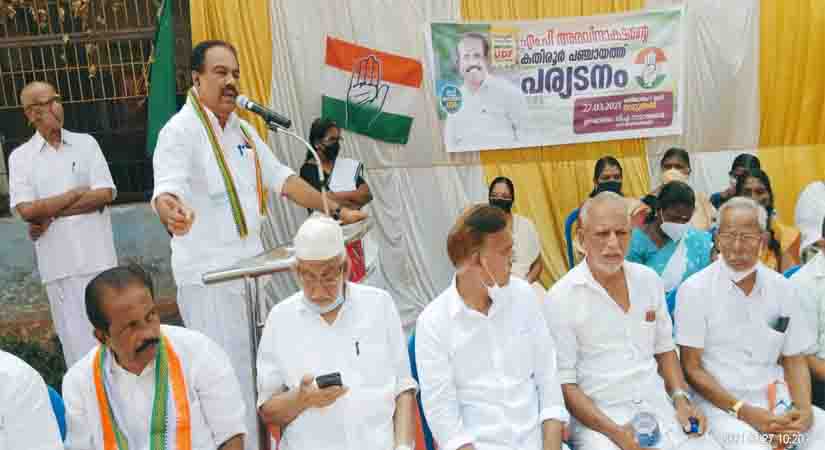 തലശ്ശേരി നിയോജകമണ്ഡലം യു. ഡി. എഫ് സ്ഥാനാര്ത്ഥി എം. പി അരവിന്ദാക്ഷന്റെ തെരഞ്ഞെടുപ്പ് പ്രചരണാര്ത്ഥം വേറ്റുമ്മലില് സംഘടിപ്പിച്ച കതിരൂര് പഞ്ചായത്ത് പര്യടനം ഉദ്ഘാടനം ചെയ്തു സംസാരിക്കുകയായിരുന്നു അദ്ദേഹം. കെ. എം മഹമ്മൂദ് അധ്യക്ഷത വഹിച്ചു. അഡ്വ. കെ. എ ലത്തീഫ്, അഡ്വ. സി. ടി സജിത്ത്, എന്. മഹമ്മൂദ്, വി. രാധാകൃഷ്ണന് മാസ്റ്റര്, സജ്ജീവ് മാറോളി, ബഷീര് ചെറിയാണ്ടി, മണ്ണയാട് ബാലകൃഷ്ന്, പി. ജനാര്ദ്ദനന് തുടങ്ങിയവര് സംസാരിച്ചു. കെ. പ്രേമരാജന് സ്വാഗതവും ഒ. ഹരിദാസ് നന്ദിയും പറഞ്ഞു.