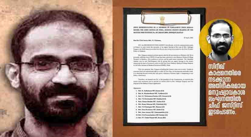 മലയാളി പത്രപവര്ത്തകന് സിദ്ദീഖ് കാപ്പന്റെ ഹര്ജി അടിയന്തരമായി പരിഗണിക്കണം: പതിനൊന്ന് എം.പിമാരുടെ സംയുക്ത കത്ത്