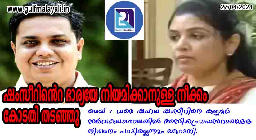 ഒന്നാം റാങ്കുകാരിയെ മറികടന്ന് ഷംസീറിന്റെ ഭാര്യയുടെ നിയമിക്കാനുള്ള നീക്കം കോടതി തടഞ്ഞു.