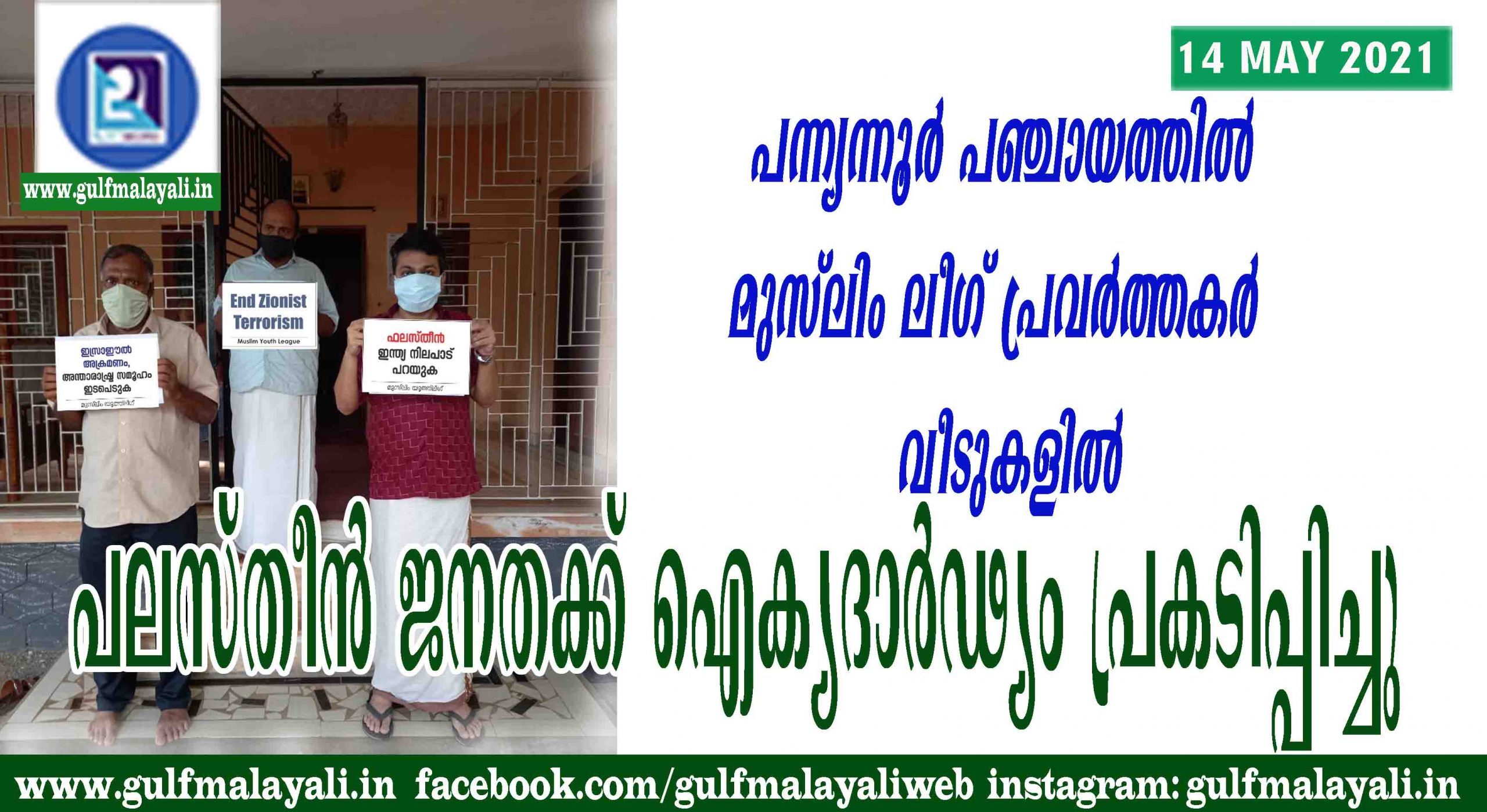 ചമ്പാട്: ചെറിയ പെരുന്നാള് ദിവസം പന്ന്യന്നൂര് പഞ്ചായത്തില് മുസ്ലിം ലീഗ് പ്രവര്ത്തകര് വീടുകളില് പലസ്തീന് ജനതക്ക് ഐക്യദാര്ഢ്യം പ്രകടിപ്പിച്ചു. മീത്തലെ ചമ്പാട് പി.കെ. ഹനീഫയും ഭാര്യയും ചമ്പാട് പി.എം മുക്കില് ജാഫര് ചമ്പാട്, തവരക്കാട്ടില് മഹറൂഫ്, മൂത്തില് ഹനീഫ, താര മുക്കില് സി.എം. ഇസ്മായില്, അല്ത്താഫ് പാറാല്, സി.എം. റെയ്സല്, ചമ്പാട് പൊന്ന്യൂപാലം നിസാര് സഫ, ലത്തീഫ് സഫ, പി.വി. അഫ്സല്, പന്ന്യന്നൂര് നൗഫല് തിരുമ്മല് എന്നിവരുടെ നേതൃത്വത്തിലാണ് പരിപാടികള് സംഘടിപ്പിച്ചത്.