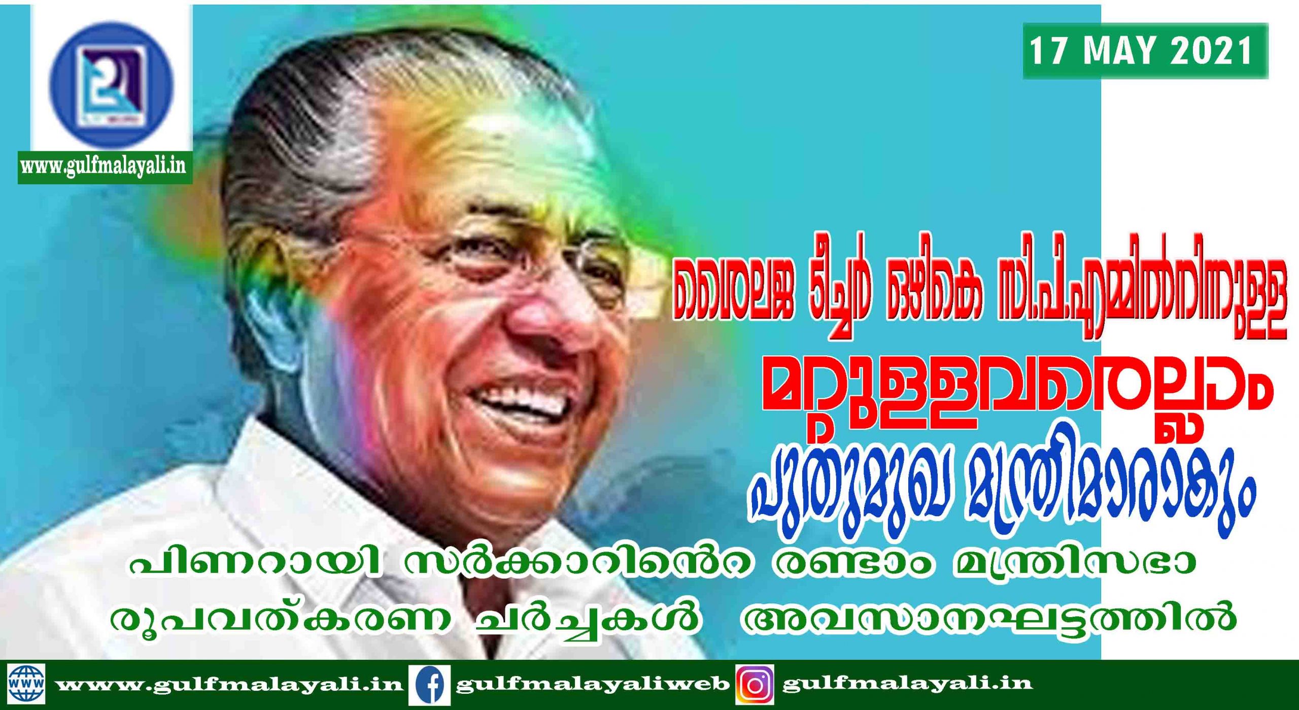 വി. ശിവന്കുട്ടി, സജി ചെറിയാന്, പി.പി ചിത്തരഞ്ജന്, വി.എന് വാസവന്, എം. ബി. രാജേഷ്, പി. നന്ദകുമാര്, സി.എച്ച്. കുഞ്ഞമ്പു എന്നിവരുടെ പേരും മന്ത്രിമാരായി പരിഗണിക്കുന്നുണ്ട്. കെ.ടി. ജലീലിനെ പരിഗണക്കുന്നില്ലെങ്കില് വി. അബ്ദുറഹ്മാനെ പരിഗണിച്ചേക്കും.
