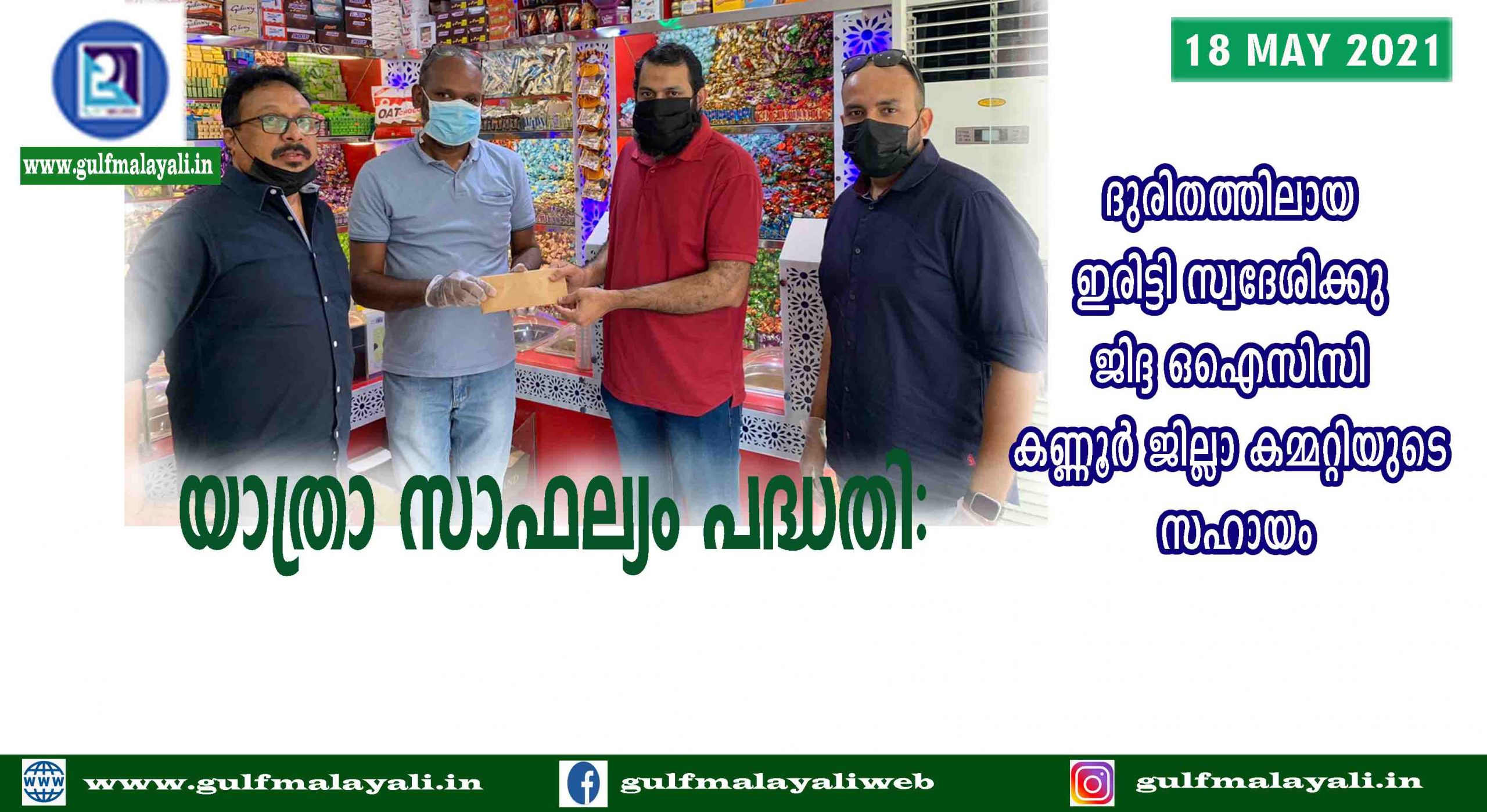യാത്രാ സാഫല്യം പദ്ധതി; ദുരിതത്തിലായ കണ്ണൂര് സ്വദേശിക്കു ഒഐസിസിയുടെ സൗജന്യ ടിക്കറ്റ് കൈമാറി