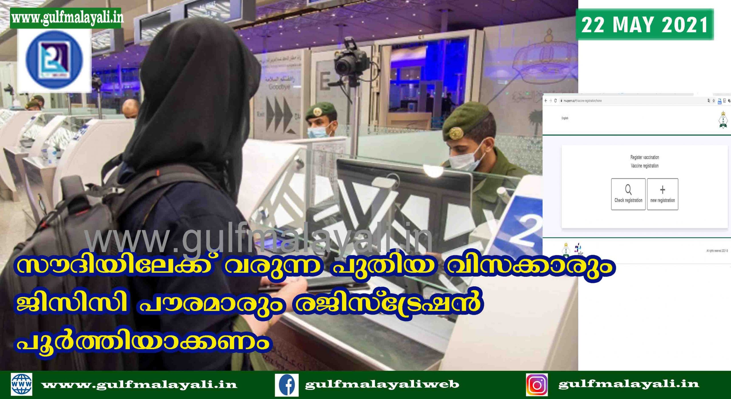 സൗദിയിലേക്ക് വരുന്ന പുതിയ വിസക്കാരും ജിസിസി പൗരമാരും രജിസ്ട്രേഷന് പൂര്ത്തിയാക്കണം