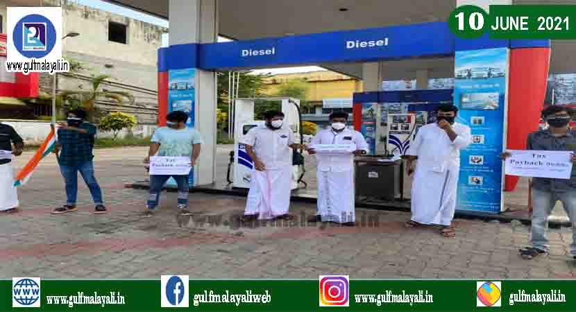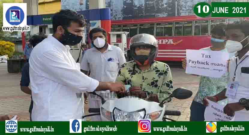 യൂത്ത് കോൺഗ്രസ് പെട്രോൾ പമ്പിൽ ടാക്സ് പെയ് ബാക്ക് സമരം നടത്തി