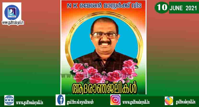 തലശ്ശേരി: രാജീവ് ഗാന്ധി മെമ്മോറിയൽ ഹയർ സെക്കൻ്ററി സ്ക്കൂൾ പൂർവ്വ അദ്ധ്യാപക യൂണിയൻ നേതാവ് കെ രമേശൻ മാസ്റ്ററുടെ അകാല നിര്യാണത്തിൽ അനുശോചനം രേഖപ്പെടുത്തി. യോഗത്തിൽ പി എൻ പങ്കജാക്ഷൻ, കെ രാജൻ, ഇ രമേശൻ തുടങ്ങിയവർ സംബന്ധിച്ചു.