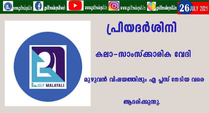 പ്രിയദർശിനി കലാ-സാംസ്ക്കാരിക വേദി മുഴുവൻ വിഷയത്തിലും എ പ്ലസ് നേടിയ വരെ ആദരിക്കുന്നു