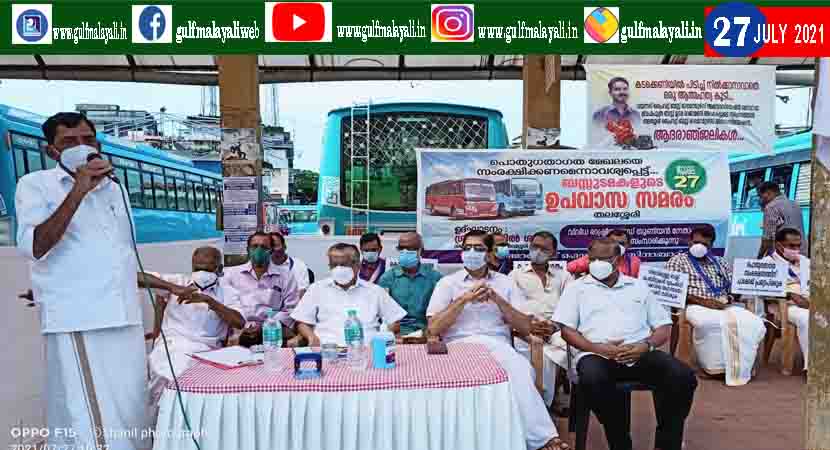 സ്വകാര്യ ബസ്സ് വ്യവസായത്തെ സംരക്ഷിക്കണമെന്നാവശ്യപ്പെട്ട് ബസ്സുടമകൾ തലശ്ശേരിയിൽ ഉപവസിച്ചു