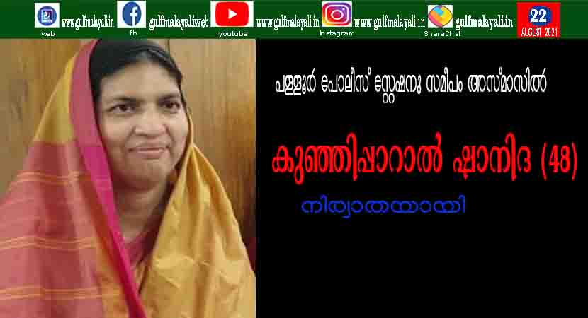 പാറാൽ: പള്ളൂർ പോലീസ് സ്റ്റേഷനു സമീപം അസ്മാസിൽ കുഞ്ഞിപ്പാറാൽ ഷാനിദ (48) നിര്യാതയായി. ചിറ്റുള്ളിൻറവിട ഉമ്മർ ഹാജിയുടെയും കുഞ്ഞിപ്പാറാൽ അസ്മയുടെയും മകളാണ്. ഭർത്താവ്: ഫസലുറഹ്മാൻ. മകൾ: ഹെൽന ഫാത്തിമ. മരുമകൻ: മെഹ് നാദ്. സഹോദരങ്ങൾ: ജസീല, നബീൽ, നിഹാല.