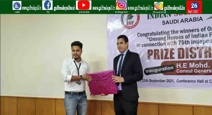ദേശീയ തലത്തില് ഒന്നാം സ്ഥാനം നേടിയ ഷിനോഫര് കളത്തിങ്ങലിന് ഡെപ്യൂട്ടി കോണ്സല് ജനറല് വൈ. സാബിര് സമ്മാനം വിതരണം ചെയ്തു. ജിദ്ദ റീജിയന് തലത്തില് വിജയികളായവര്ക്ക് ഹംന മറിയം (കോണ്സല്, കോമേഴ്സ് ആന്ഡ് എച്.ഒ.സി), ഇന്ത്യന് സോഷ്യല് ഫോറം സൗദി നാഷണല് പ്രസിഡന്റ് അഷ്റഫ് മൊറയൂര് എന്നിവര് സമ്മാനങ്ങള് വിതരണം ചെയ്തു.