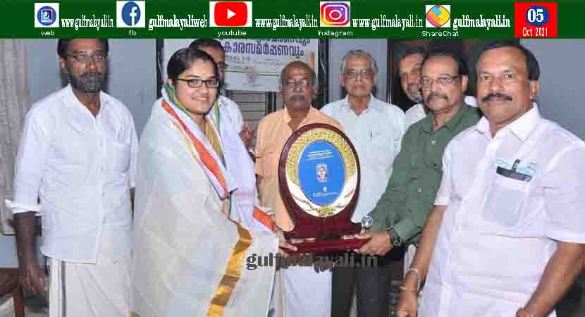 ലേഖന മത്സരത്തിൽ ഒന്നാം സ്ഥാനം നേടിയ സി ജി.എം.കെ.യെ പുരസ്കാരം നല്കി ആദരിക്കുന്നു.