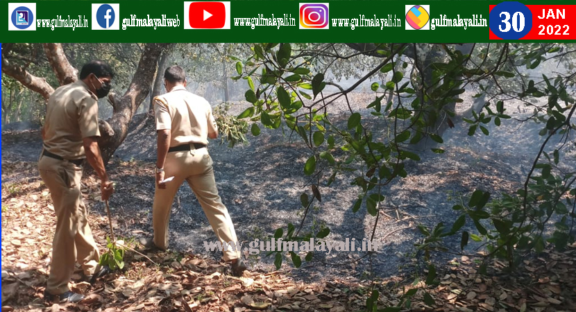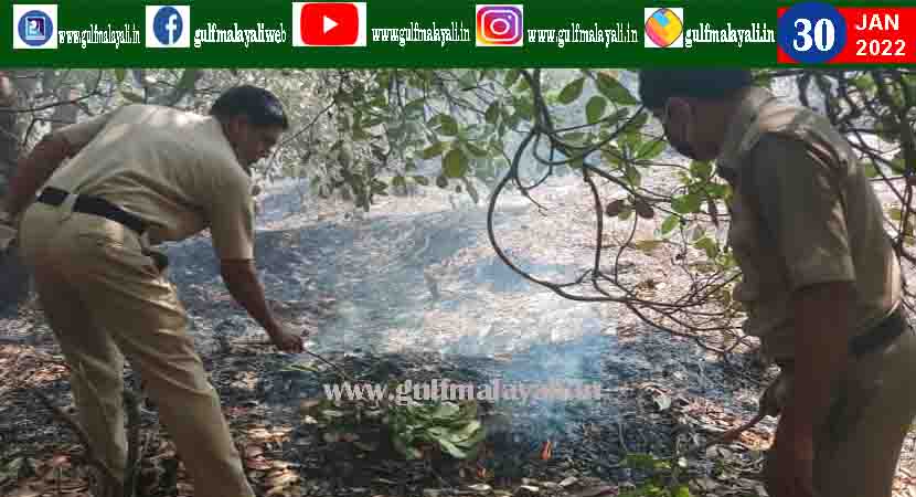 ആയിത്തറ മമ്പറം മിന്നി പീടികക്ക് സമീപം കശുമാവിൻ തോട്ടത്തിൽ പിടിപ്പെട്ട വൻ അഗ്നിബാധ പ്രദേശവാസികൾ അറിയിച്ചത് പ്രകാരം അവിടെ എത്തിയതായിരുന്നു എക്സൈസ് സംഘം.