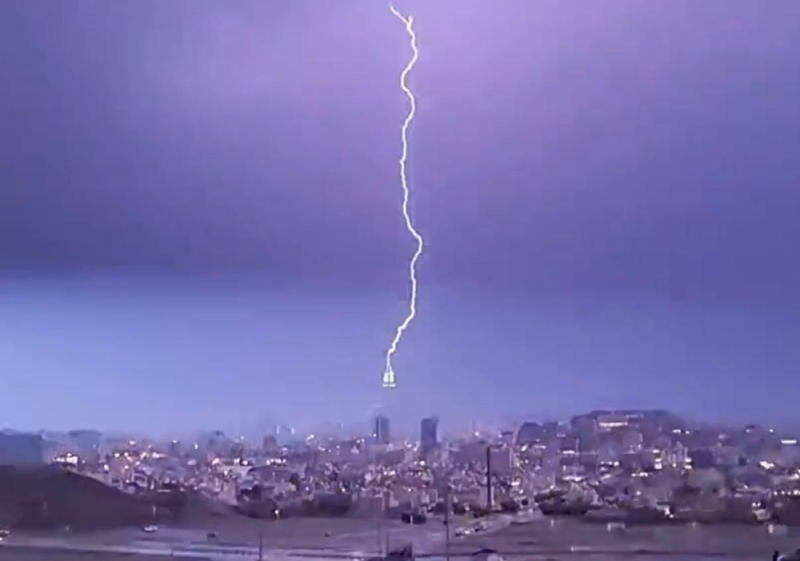വിശുദ്ധ മക്കയിലെ ഹറമിനടുത്തുള്ള ക്ലോക്ക് ടവറില് ഇടിമിന്നല് പിണര് പതിക്കുന്ന രംഗം വൈറലായി