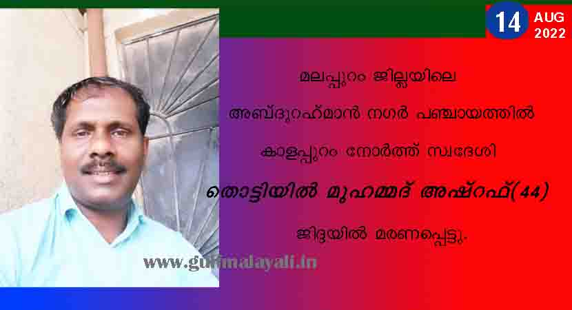 മലപ്പുറം അബ്ദുറഹ്മാന് നഗര് കൊളപ്പുറം സ്വദേശി ജിദ്ദയില് മരണപ്പെട്ടു.