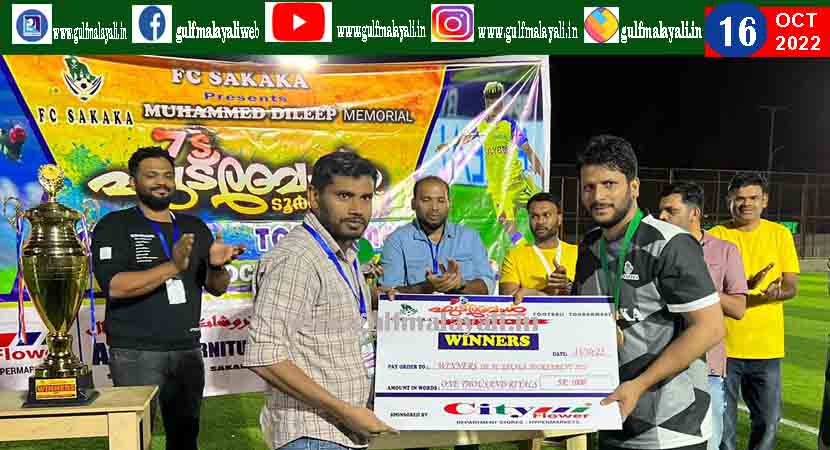 അല്ജൗഫിലെ സകാകയില് നടന്ന മുഹമ്മദ് ദിലീപ് സ്മാരക ഫുട്ബാള് ടൂര്ണമെന്റില് എഫ്.സി സക്കാക്ക വിജയികളായി