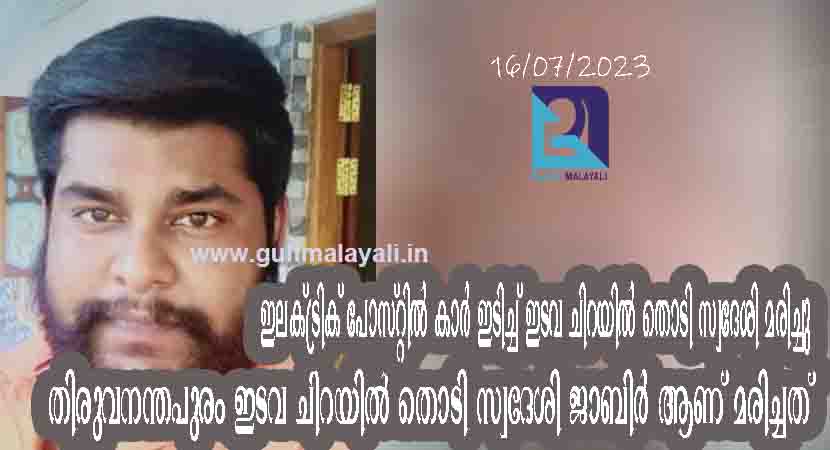 ഇലക്ട്രിക് പോസ്റ്റില് കാര് ഇടിച്ച് ഇടവ ചിറയില് തൊടി സ്വദേശി മരിച്ചു