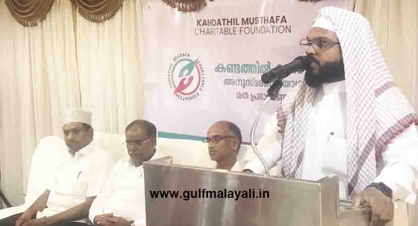 നീണ്ട നാലു ദശാബ്ദക്കാലം ആലപ്പുഴ ജില്ലയിലെ കാക്കാഴം കമ്പിവളപ്പിൽ ഖാദിരിയ്യ ജുമാ മസ്ജിദിൽ പ്രതിഫലം പറ്റാതെ ‘മുഅദിൻ’ ആയി സേവനം ചെയ്ത കണ്ടത്തിൽ മുസ്തഫ ഹാജിയുടെ പ്രവർത്തനം മാതൃകാപരവും അദ്ദേഹത്തിന്റെ പേരിലുള്ള കണ്ടത്തിൽ മുസ്തഫ ചാരിറ്റബിൾ ഫൗണ്ടേഷൻ പ്രവർത്തനം ശ്ലാഘനീയമാണെന്നും അദ്ദേഹം പറഞ്ഞു.