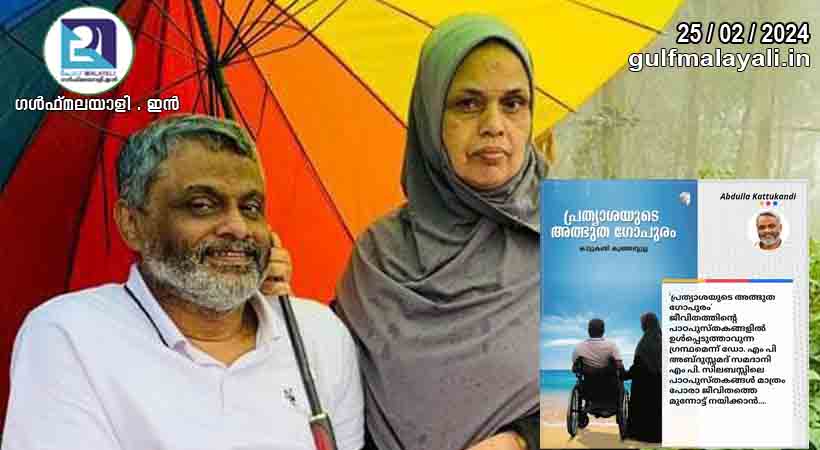 .കുഞ്ഞബ്ദുള്ളക്കു കൊപ്രാ കച്ചവടം ആയിരുന്നു ജോലി. മുപ്പത്തിയൊന്നു വർഷങ്ങൾക്ക് മുൻപ് കോഴിക്കോട്ടെ കച്ചവടവും കഴിഞ്ഞ് വീട്ടിലേക്കുള്ള വഴിയിൽ യാത്രാമധ്യേ സഞ്ചരിച്ചു കൊണ്ടിരുന്ന വാഹനത്തിനു മുകളിൽ ഒരു മരം വീഴുന്നു. ചിതറിപ്പോയ ശരീരം 25 ദിവസം പോലും തികയ്ക്കില്ലെന്ന ഡോക്ടർമാരുടെ പ്രവചനങ്ങളെ ഉൾക്കരുത്തു കൊണ്ട് തിരുത്തിയെഴുതി ജീവിതം 31 വർഷത്തിനിപ്പുറവും വീൽ ചെയറിൽ മുന്നോട്ട് കൊണ്ടുപോയി. പേന പിടിക്കാൻ പ്രായസപ്പെടുന്ന കൈകൊണ്ട് 23 വർഷമെടുത്ത് കമിഴ്ന്നു കിടന്നുകൊണ്ടെഴുതി ജീവിതകഥയാണ് പുസ്തക രൂപത്തിൽ ”പ്രത്യാശയുടെ അത്ഭുതഗോപുരം” എന്ന പേരിൽ പുറത്തിറങ്ങുന്നത്.