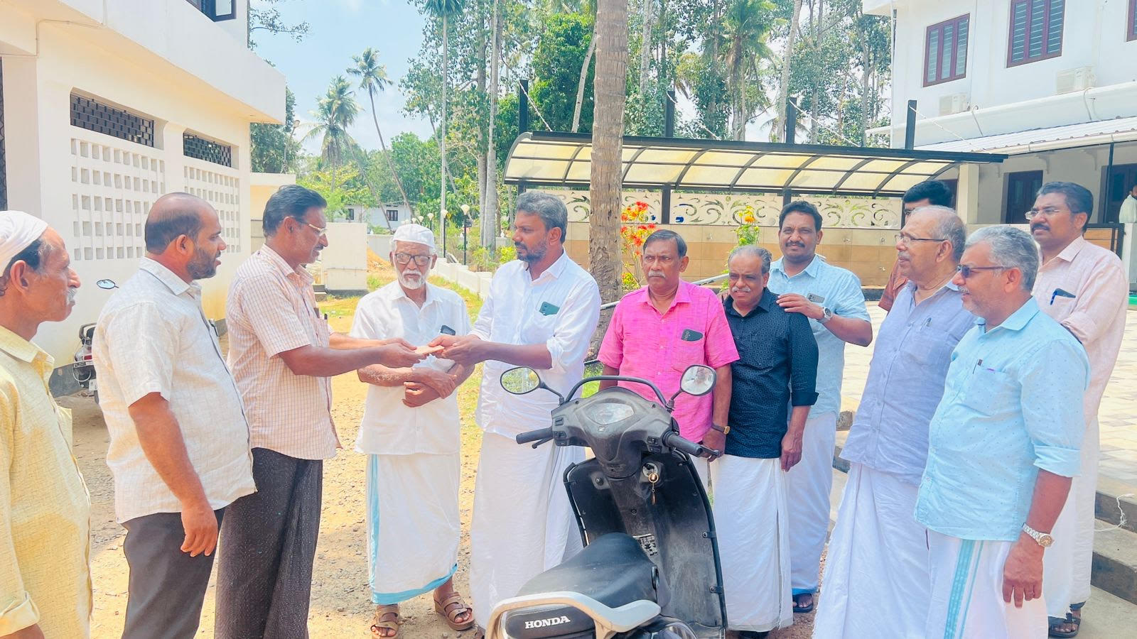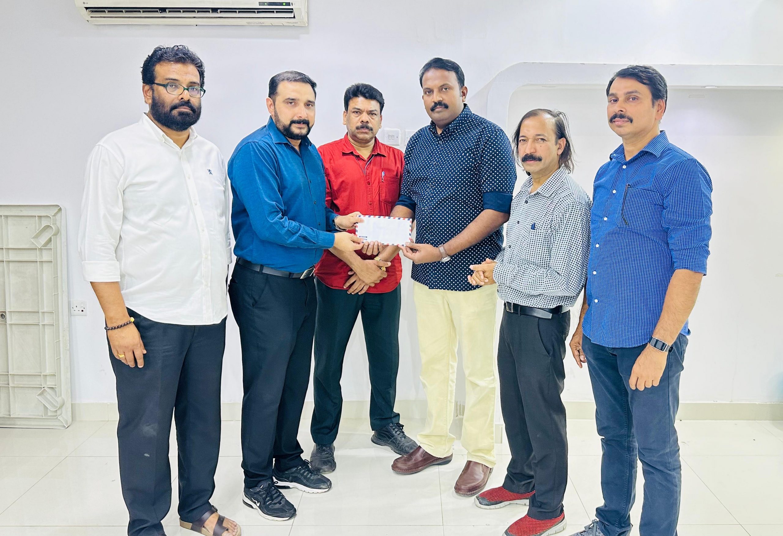 സഫറുള്ളക്കുള്ള ചികിത്സാ ധനസഹായം മൈത്രി ഭാരവാഹികൾ കൈമാറുന്നു.