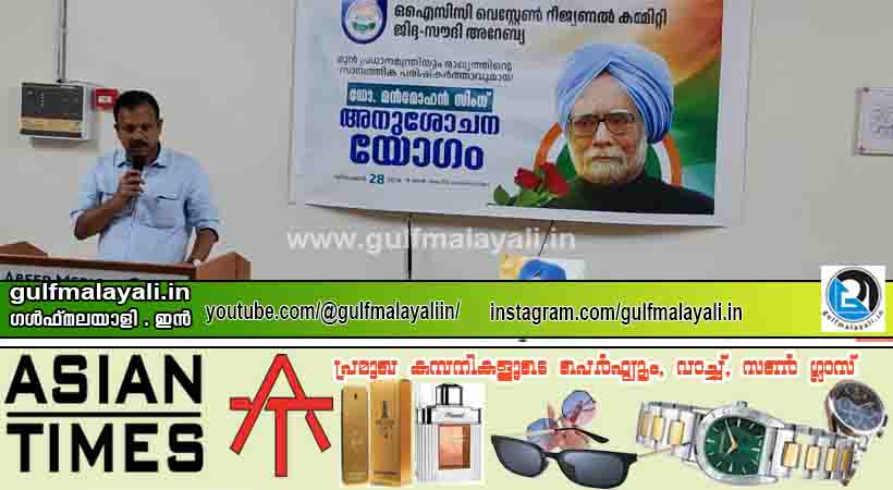 ഒഐസിസി വെസ്റ്റേൺ റീജ്യണൽ കമ്മിറ്റി ഡോ. മൻമോഹൻ സിംഗിന്റെ വിയോഗത്തിൽ അനുശോചന യോഗം സംഘടിപ്പിച്ചു