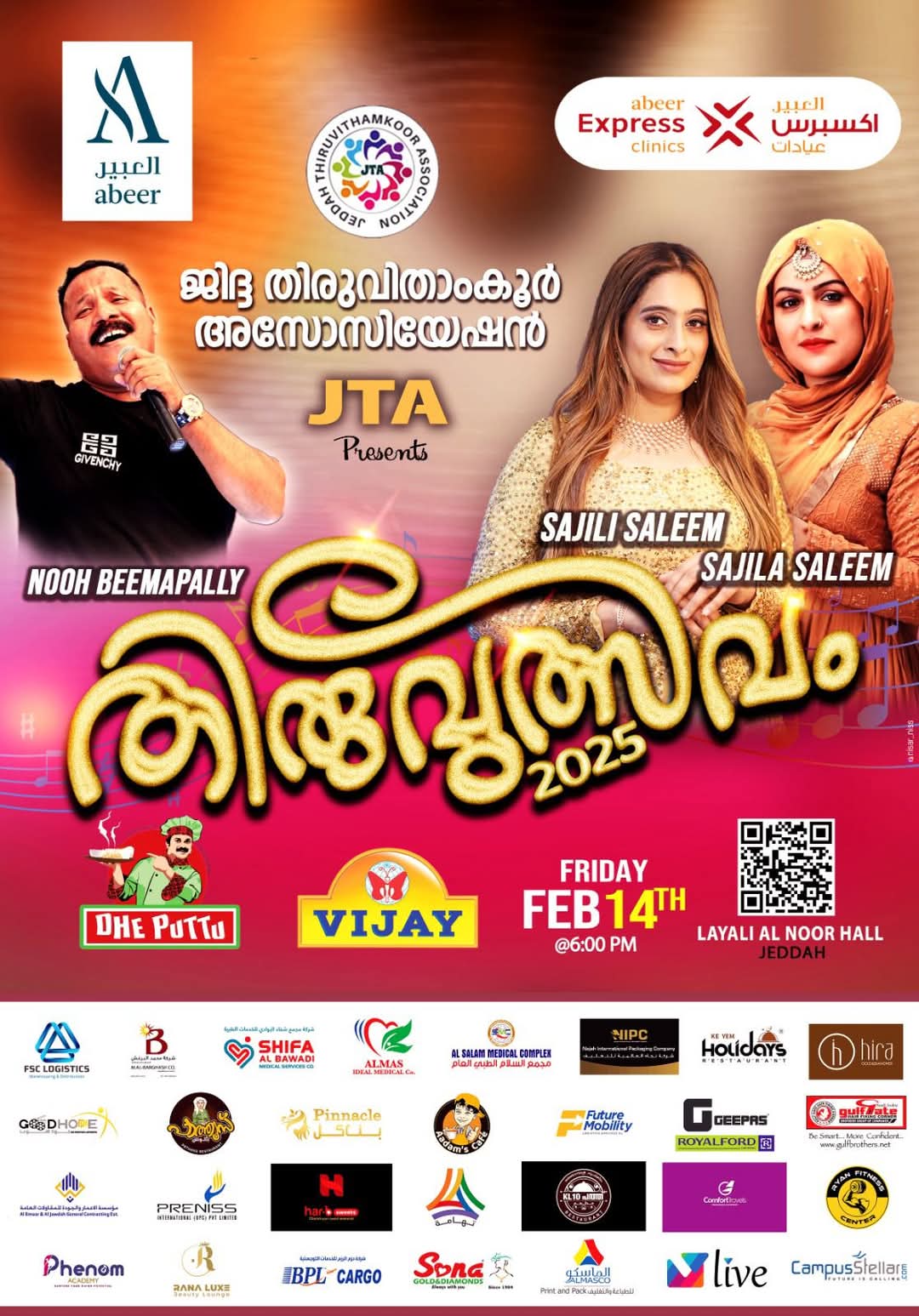 ജിദ്ദ: ജിദ്ദ തിരുവിതാംകൂർ അസ്സോസിയേഷൻ വാർഷികം ‘തിരുവുത്സവം 2025 ‘ എന്ന ശീർഷകത്തിൽ അൽ-ലയാലി ആഡിറ്റോറിയത്തിൽ ഫെബ്രുവരി 14, ന് 6 മണിക്ക് ആരംഭിക്കും. നിരവധി സാമൂഹ്യ സാംസ്കാരിക വിദ്യാഭ്യാസ ജീവകാരുണ്യ മേഖലകളിൽ ക്രിയാത്മകവും സജീവവുമായ ഇടപെടലുകൾ നടത്തുവാൻ തുടക്കം മുതൽ ജെ. ടി. എ യ്ക്കു കഴിഞ്ഞിട്ടുണ്ടെന്ന് ജിദ്ദയിൽ നടത്തിയ വാർത്താ സമ്മേളനത്തിൽ സംഘാടകർ പറഞ്ഞു.