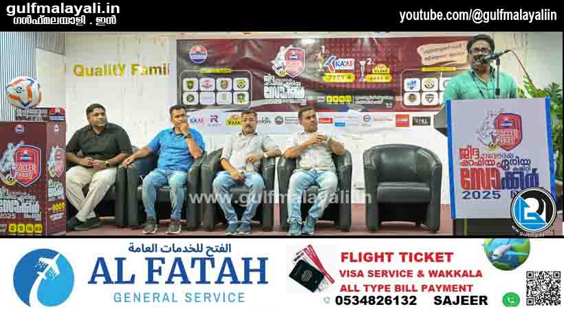 ജിദ്ദ: നവോദയ ഷറഫിയ ഏരിയ കമ്മിറ്റി സംഘടിപ്പിക്കുന്ന സെവൻസ് ഫുട്ബോൾ ടൂർണമെന്റായ “സോക്കർ ഫെസ്റ്റ്” ന്റെ ഫിക്സ്ച്ചർ പ്രകാശനം ഷറഫിയ ക്വാളിറ്റി ഹോട്ടലിൽ വിപുലമായ പരിപാടികളോടെ നടന്നു. “ഫുട്ബോളാണ് ലഹരി, കളിക്കളമാണ് ആവേശം” എന്ന മുദ്രാവാക്യവുമായി മെയ് 2 മുതൽ 23 വരെ (നാല് വെള്ളിയാഴ്ചകളിൽ) ഖാലിദ് ബിൻ വലീദ് ബ്ലാസ്റ്റേഴ്സ് സ്റ്റേഡിയത്തിലാണ് ടൂർണമെന്റ് അരങ്ങേറുക. 8 പ്രമുഖ സീനിയർ ടീമുകളും 8 വെറ്ററൻസ് ടീമുകളും ടൂർണമെന്റിൽ മാറ്റുരയ്ക്കും.