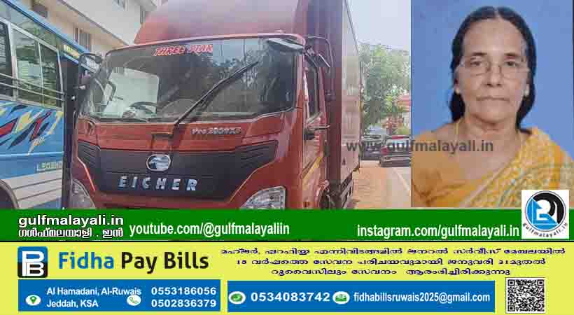 ക്ഷേത്ര ദർശനത്തിനു പോകവെ വയോധിക ലോറി തട്ടി മരിച്ചു