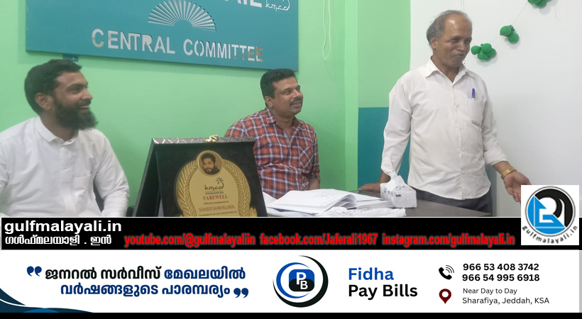 സെൻട്രൽ കമ്മിറ്റി വൈസ് പ്രസിഡണ്ട് നൗഷാദ് ഓമശ്ശേരി അധ്യക്ഷതവഹിച്ചു. ആക്ടിംഗ് പ്രസിഡണ്ട് സകരിയ ആയഞ്ചേരി യാത്രയയപ്പ് പരിപാടി ഉദ്ഘാടനം ചെയ്തു. അഷ്കർ വടകര ഹമീദ് വയനാട് എന്നിവർ ആശംസകൾ അർപ്പിച്ചു.