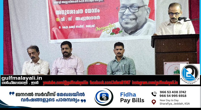 മുതിർന്ന CPM നേതാവും പാർട്ടി സ്ഥാപക നേതാക്കളിൽ അവസാനത്തെ ആളും സി.പി.എം പോളിറ്റി ബ്യൂറോ അംഗവും മുൻ മുഖ്യമന്ത്രിയും ഭരണ പരിഷ്കാര കമ്മറ്റി ചെയർമാൻ എന്നീ നിലകളിൽ പ്രവർത്തിച്ചിട്ടുള്ള ഏറ്റവും മുതിർന്ന നേതാവായിരുന്ന സഖാവ് വി.എസ് അച്ചുതാനന്ദൻ്റെ നിര്യാണത്തിൽ ചേര്ന്ന അനുശോചനയോഗത്തിൽ പ്രസിഡൻ്റ് മുസ്തഫ തെക്കൻ അദ്ധ്യക്ഷത വഹിച്ചു.