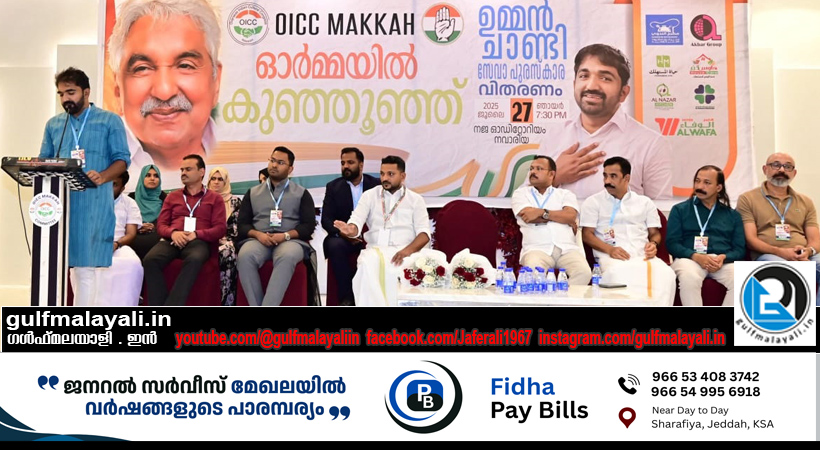 മക്ക ഒ.ഐ.സി.സി ഉമ്മൻചാണ്ടി സേവാ പുരസ്കാര വിതരണവും അനുസ്മരണവും സംഘടിപ്പിച്ചു