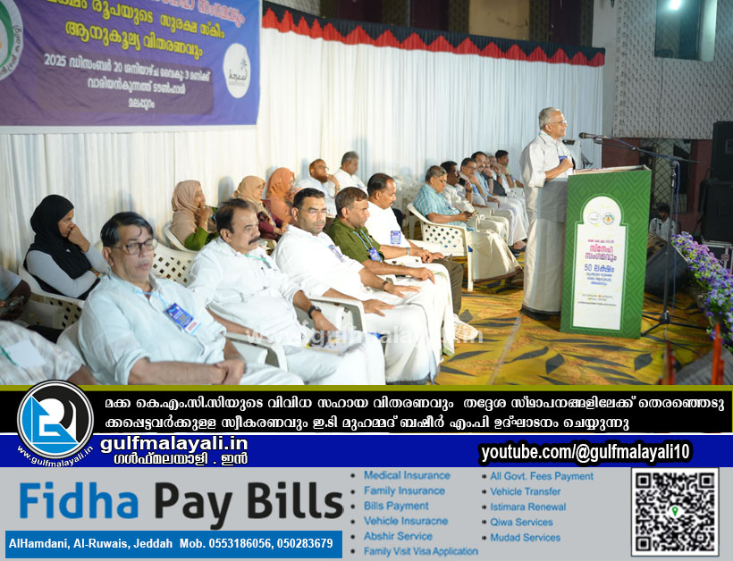 മക്ക കെ.എം.സി.സിയുടെ സാമൂഹ്യ സുരക്ഷ പദ്ധതിയില് അംഗങ്ങളായിരിക്കെ മരണപ്പെട്ട 10ഓളം കുടുംബങ്ങള്ക്കുള്ള സഹായവും മക്ക കെ.എം.സി.സി ശിഹാബ് തങ്ങള് റിലീഫ് ഫണ്ടില് നിന്നും കേരളത്തിലെ വിവിധ സി.എച്ച് സെന്ററുകള്ക്കുന്ന സഹായവും ഇ.ടി മുഹമ്മദ് ബഷീര് എം.പി വിതരണം ചെയ്തു. മലപുറം ജില്ല മുസ്ലിംലീഗ് ജനറൽ സെക്രട്ടറി ഹമീദ് മാസ്റ്റർ എം എൽ എ ചടങ്ങിൽ മുഖ്യപ്രഭാഷണം നടത്തി. തദ്ദേശ തെരഞ്ഞെടുപ്പില് വിജയിച്ച മക്ക കെ.എം.സി.സി മെമ്പര്മാര്ക്കും ജില്ലയിലെ വിവിധ തദ്ദേശ സ്ഥാപനങ്ങളിലേക്ക് തെരഞ്ഞെടുക്കപ്പെട്ട മുസ്്ലിംലീഗ് പ്രതിനിധികള്ക്കുമുള്ള ഉപഹാരം മുസ്ലിം ലീഗ് സംസ്ഥാന വൈസ് പ്രസിഡന്റ് സി.പി സൈതലവി സമ്മാനിച്ചു. വിവിധ ആനുകൂല്യങ്ങള് പി ഉബൈദുല്ല എം.എല്.എ കൈമാറി.