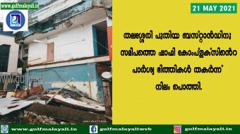 തലശ്ശേരി: പുതിയ ബസ്റ്റാന്ഡിനു സമീപത്തെ ഷാഫി കോംപ്ളക്സിന്റെ പാര്ശ്വ ഭിത്തികള് തകര്ന്ന് നിലം പൊത്തി. കോംപ്ളക്സിനു കീഴില് പ്രവര്ത്തിക്കുന്ന ടയര്