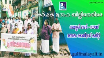 തലശ്ശേരി: കേന്ദ്ര സർക്കാരിൻ്റെ കർഷക ദ്രോഹ ബില്ലിനെതിരെ കെപിസിസി ആഹ്വാന പ്രകാരം തലശ്ശേരി ടൌൺ - സൌത്ത് മണ്ഡലം കോൺഗ്രസ്